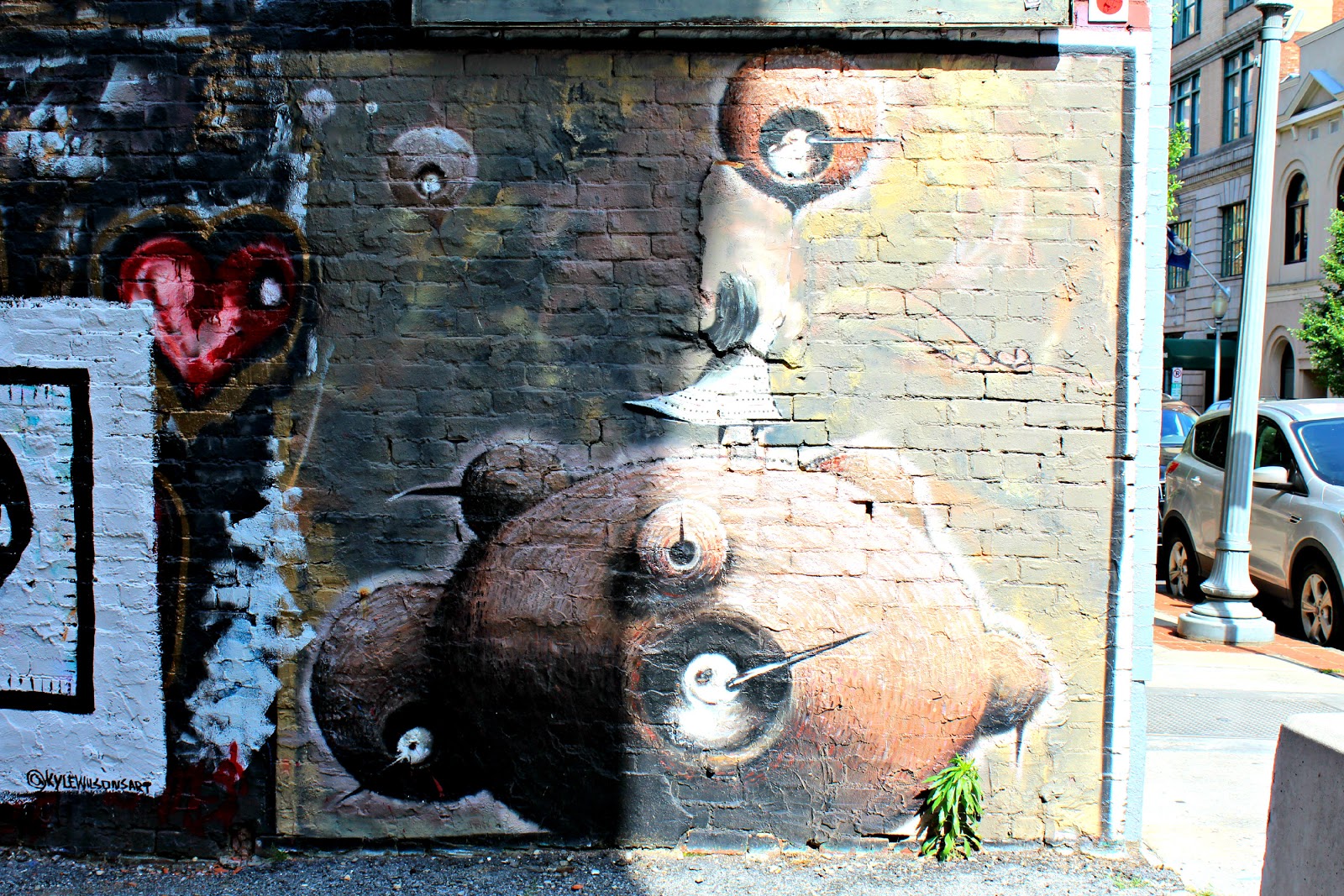 This wall on the side of the gallery is pretty awesome...all different work from different artists. I knew this one had to be a Toobz Muir painting when I saw it. His work is so unique. You might remember some of his stuff I've shown you HERE