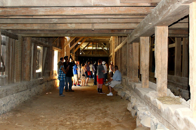 Anyways, this barn was built in the summer of 1860 by the enslaved community of Stagville. It was built like an upside down hull of a ship with many nautical features which leave historians speculating that some of the slaves spent time in the shipyards along the coast. This large barn housed up to 80 mules...you can see some cribbing done by some of them.