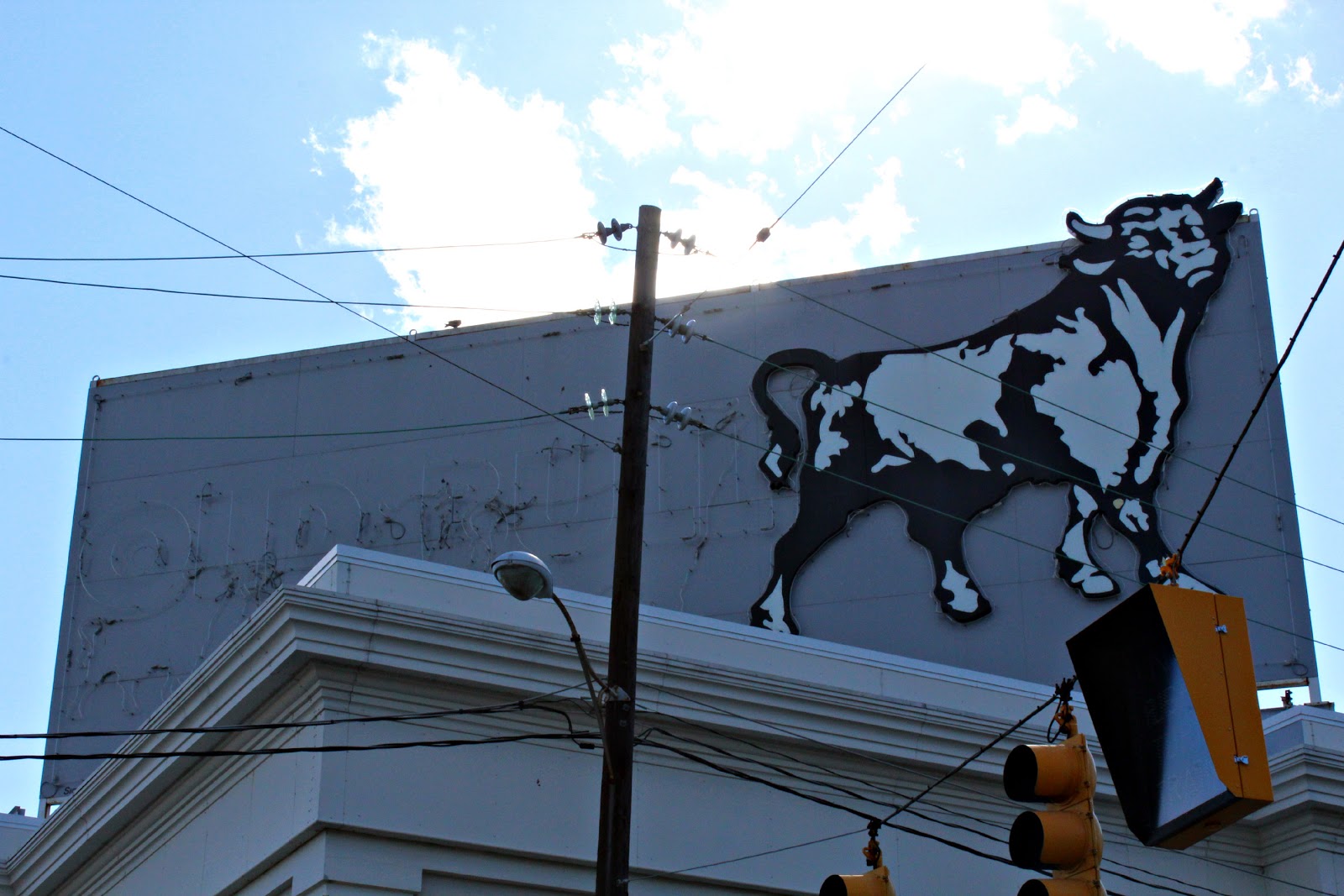 "This is the front of a diner in the Historic Tobacco District of downtown Durham, NC. Tobacco and cigarettes played a large roles in North Carolina's history. From 1874-1987, this National Historic Landmark was the headquarters of American Tobacco Company, the worlds largest cigarette manufacturer where the raw leaves were made into the finished product. It was dirty, hard work for the employees at these large facilities. One can imagine this little lunch counter being an 'oasis' of sorts, providing a hot, cheap meal for these workers." Which I found HERE