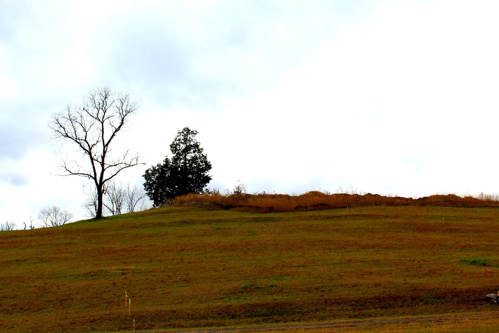 This month's theme day was picked by yours truly! My take on the theme this month is the "transitions" Greenfield is going through...many of you know how much I LOVED coming here and using the trail system...then the Board of Supervisors started hacking it up to put in businesses. Bringing jobs is good, I know, but this area was so beautiful, and historic and now it will be nothing but a big industrial park :( ...so since all this started a year ago, I haven't been back till now...used to be able to drive right along the road where the "road closed" signs are...then take a little gravel road to the left which took me to the hill where the old slave cabins stood...it was a gorgeous view and a peaceful place...(notice the "road closed" signs didn't stop me, but I didn't see anything going on, construction had stopped for the day because of the rain I guess...